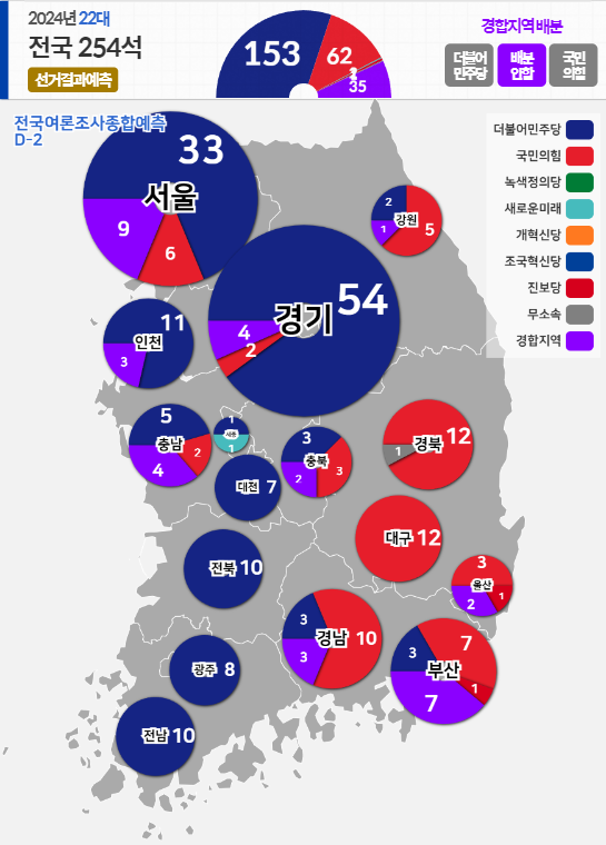 | [투표일 D-2] [2024 국회의원 총선거] 최종 의석 예측 (0) | 2024.04.08 |