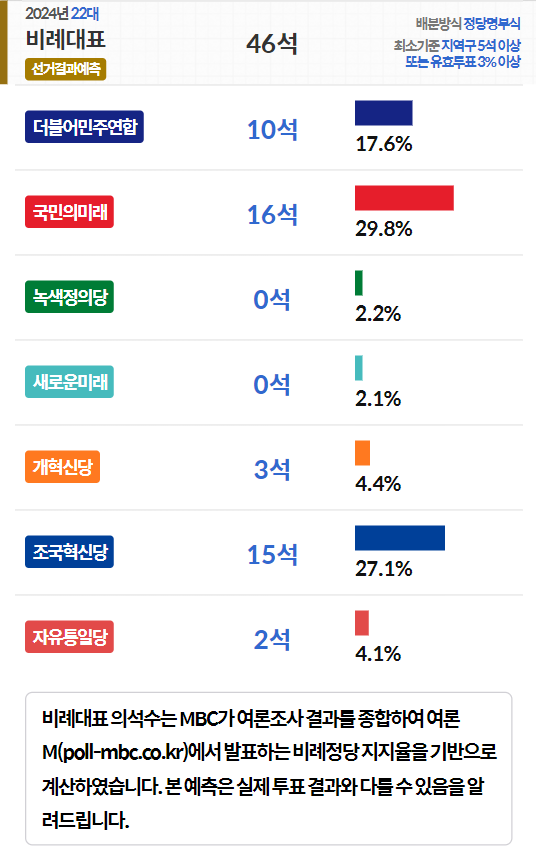 | [투표일 D-2] [2024 국회의원 총선거] 비례대표 선거예측 (0) | 2024.04.08 |