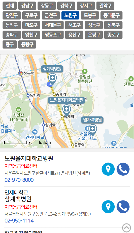 시도별 / 시군구별 종합병원의 위치 및 전화번호를 간편한 터치로 검색하세요.