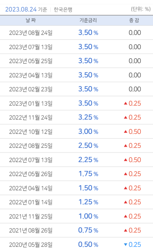 [한국은행 기준금리 변동 내역 - 예금금리끝판왕 앱]
